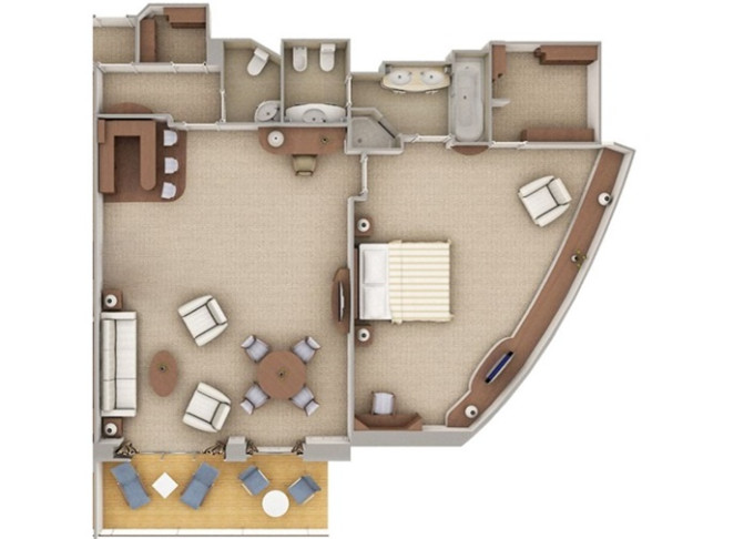 | O2 - Owner's Suite 2 117 m² (vrátane balkóna 20 m²). Owners Suite O1 spojená s Vista Suite. 7. paluba stred. Max 5 osôb. | 36 000 € 36 000 € za osobu |