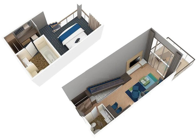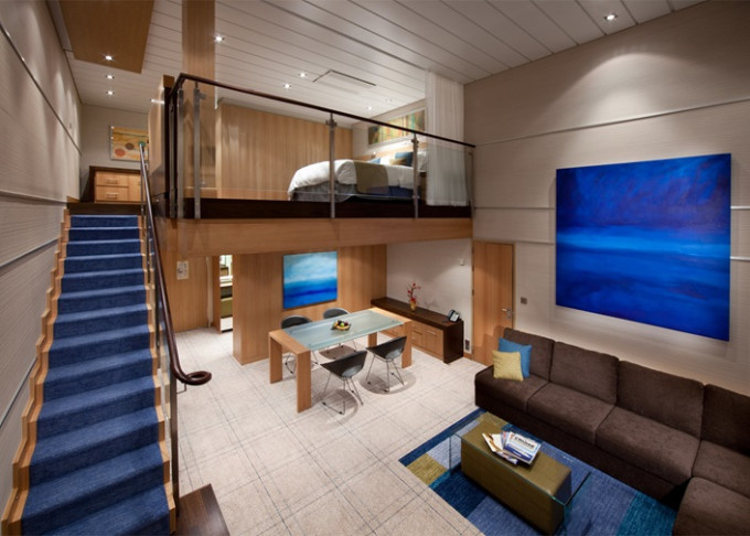 | L1 - Crown Loft Suite s balkónom 68 m² + balkón 13 m². 2-podlažný apartmán. 17. paluba. Max 4 osoby. Výhody Royal Suite Sky Class. | 7 329 € 7 329 € za osobu | ||