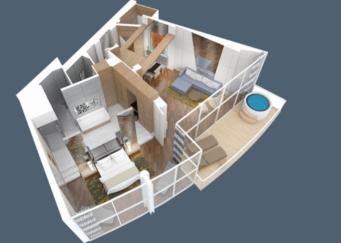 | OP - Owner's Panoramic Suite 100 m² + balkón 15 m² s vírivkou. 2-podlažný apartmán. 17. paluba. Max 4 osoby. Výhody Royal Suite Star Class. | 19 245 € 6 415 € za osobu | ||