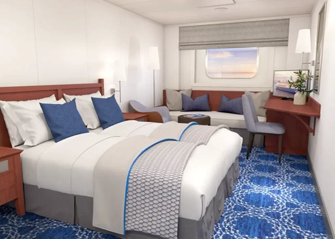 | XBO - Kajuta s oknom Cosmos / obmedzený výhľad 14 m². Neotvárateľné okno s obmedzeným výhľadom. 6,7. paluba. Max 4 osoby. | 2 438 € 1 219 € za osobu | ||